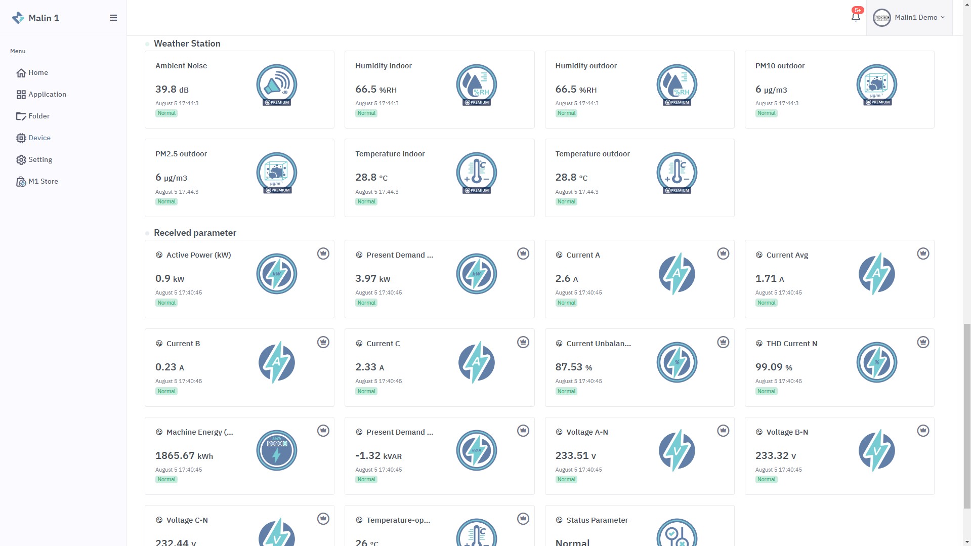 Malin 1 คือ แพลตฟอร์มออนไลน์ที่รวบรวม,ประมวลผลข้อมูลค่าพารามิเตอร์ทั้งหมดที่เก็บได้จาก Cloud Data นำมารวบรวมแสดงผลอย่างมีรูปแบบ เพื่อเหมาะสำหรับการเฝ้าสังเกตการณ์ ตั้งค่าจำกัดตามเงื่อนไข จัดกลุ่มรูปแบบอุปกรณ์ เพื่อความสะดวกสบายแก่ผู้ใช้งาน รอบรับการเชื่อมต่อโปรโตคอลอุตสาหกรรม มีความปลอดภัยสูง และได้รับการพัฒนาโดยทีมงานอยู่ตลอดเวลา