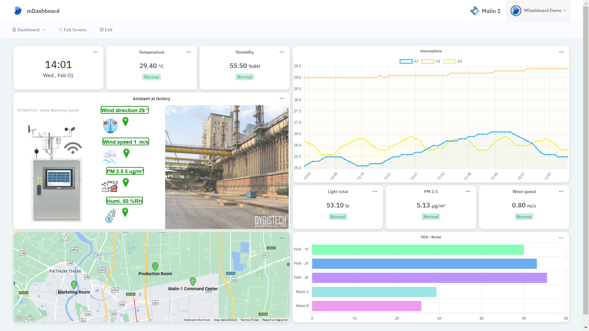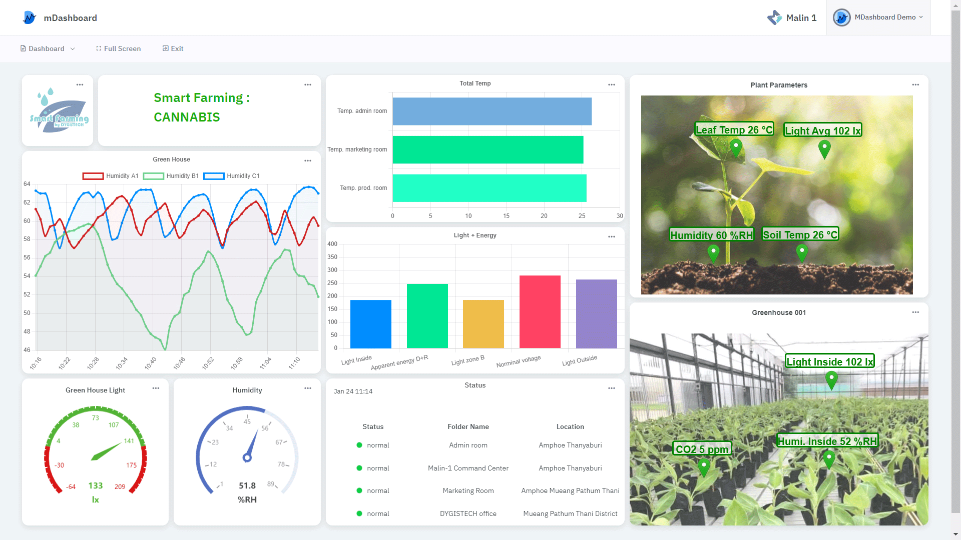 mDashboard คือ แดชบอร์ดแสดงผลการทำงาน ที่รวบรวมค่าจากพารามิเตอร์ เซนเซอร์ ที่เก็บข้อมูลต่างๆ นำมาแสดงผลและจัดรูปแบบให้ใช้งานได้ง่าย สะดวกสบาย พร้อมในการมอนิเตอร์ สามารถปรับแต่งวิทเจ็ดต่าง ๆ ได้หลากหลายสไตล์ตามรูปแบบการทำงานของผู้ใช้