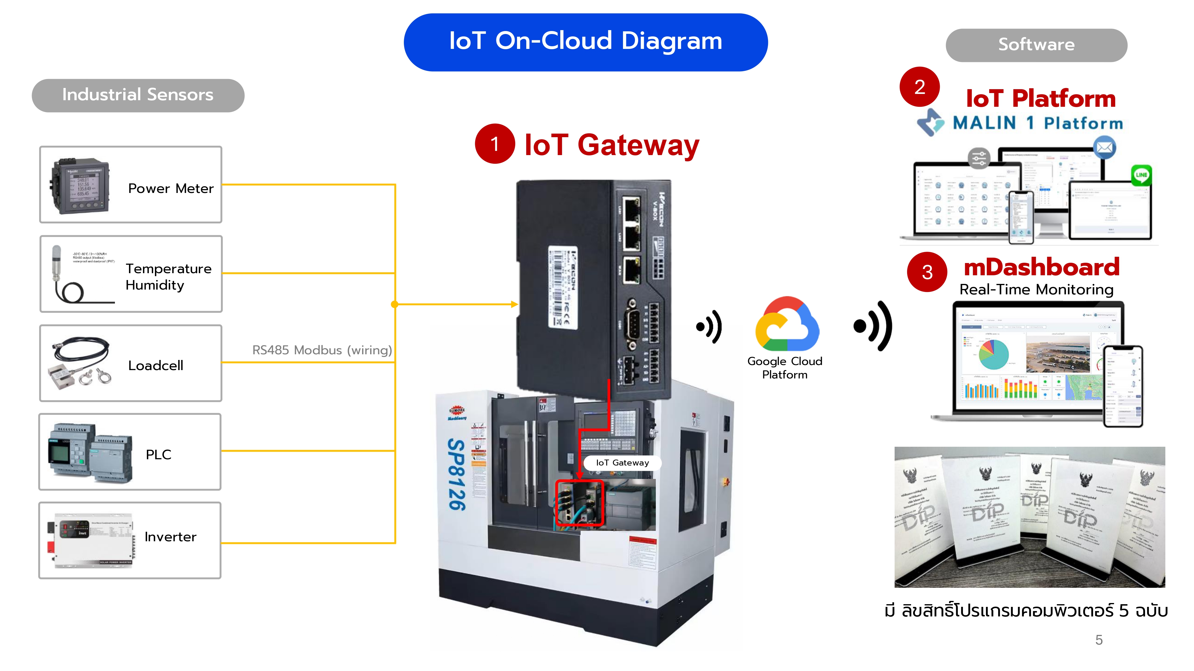 ข้อมูลทั้งหมดจะถูกส่งไปยัง google cloud ผ่าน wifi, 4G ประมวณผลอย่างเป็นระบบด้วย Malin 1 Platform